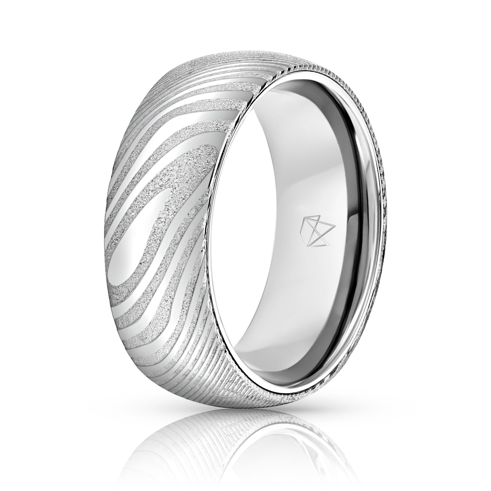 Sterling Silver Interior: This EMBR damascus band sports a luxurious, solid 925 Sterling Silver interior. Perfected with a smooth comfort fit, this classic piece is a beautiful match for its damascus shell.