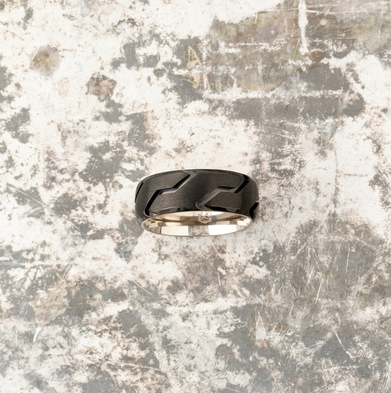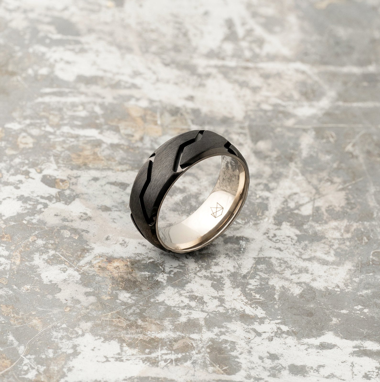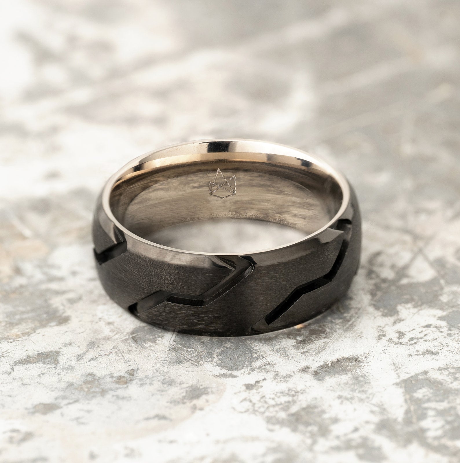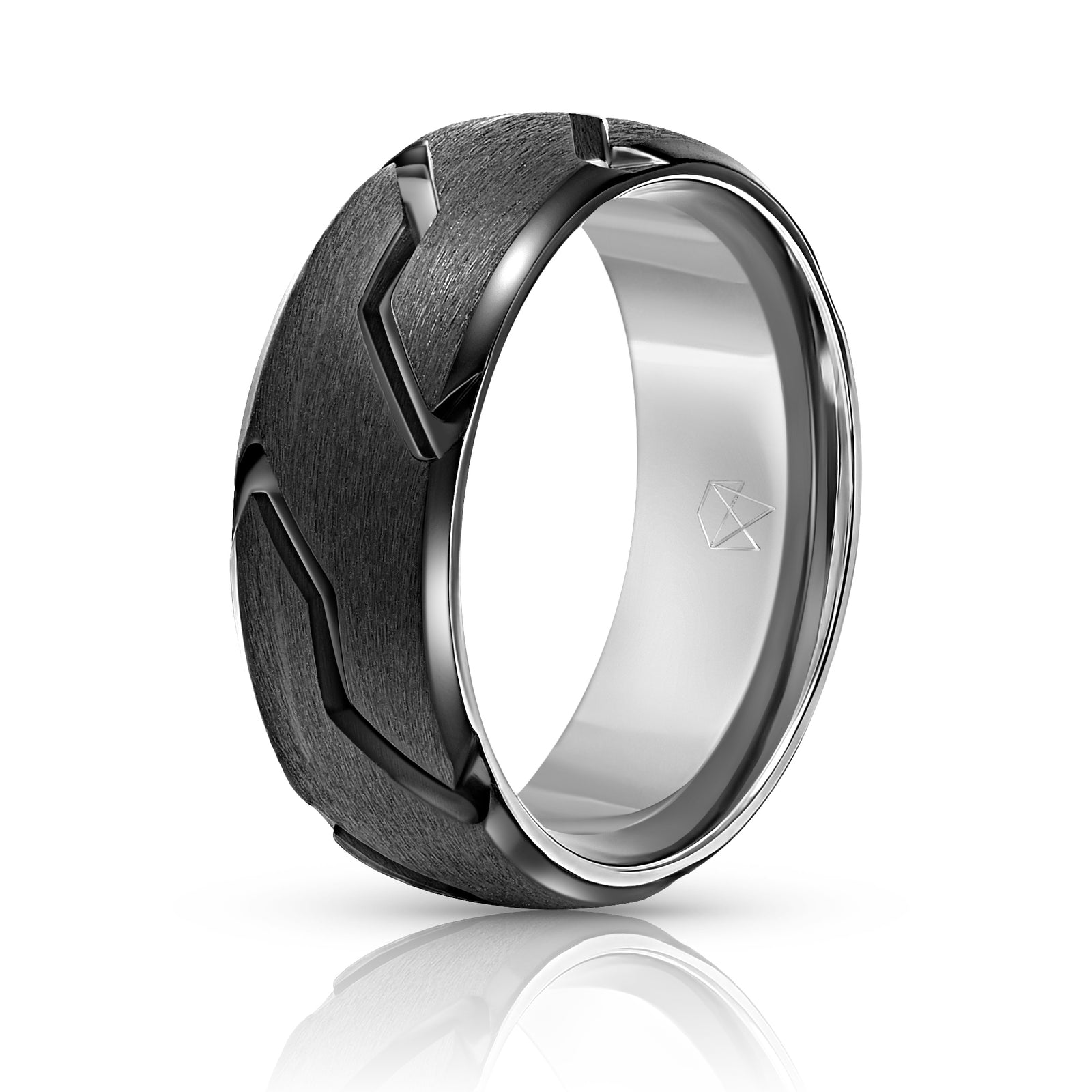 Titanium Black Striker:The EMBR titanium band offers a stunning, bold touch on a modern ring. Although extremely lightweight, titanium has an impressive strength-to-weight ratio, meaning it is an exceptionally strong and durable metal. It ranks a 6 on the Mohs Hardness scale, compared to a gold band with a rating of 3. It is hypoallergenic, highly resistant to corrosions, and easily maintained. This EMBR titanium band might feel light as a feather, but it is designed to stand the test of time.