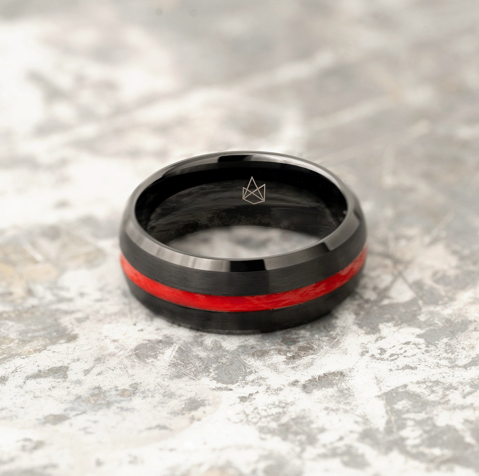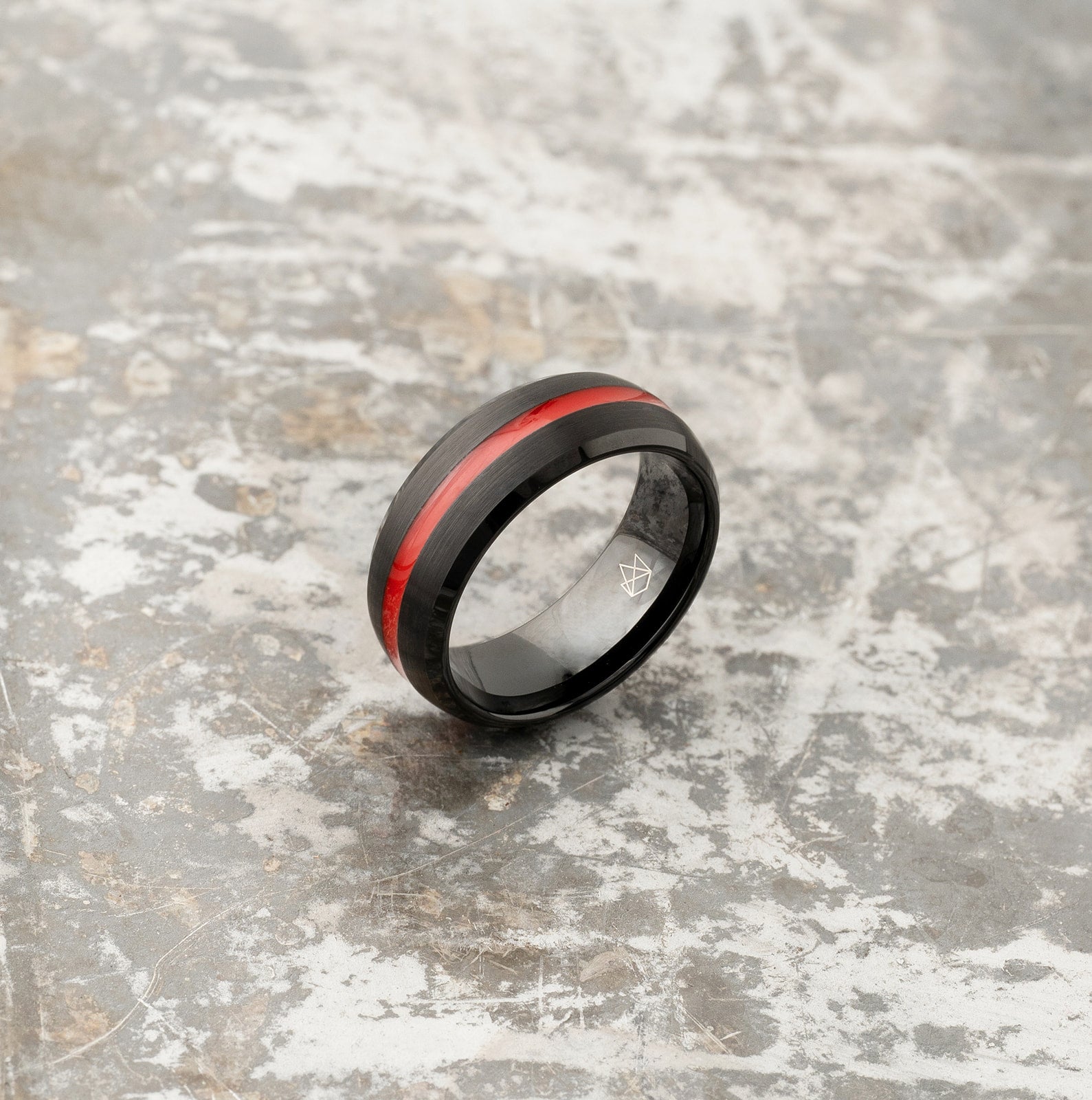 Black Tungsten Red Infinity: The EMBR black tungsten band has been reimagined in jet black, engineered to be as strong as it is beautiful. Its strength is unmatched. It is about ten times harder than 18K gold and about four times harder than titanium. Tungsten also holds its shape forever, meaning the ring will not bend or wear down, truly making it timeless in its function and design.