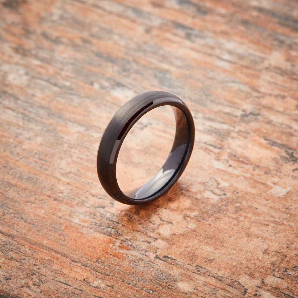 The EMBR black tungsten band has been reimagined in jet black, engineered to be as strong as it is beautiful. Its strength is unmatched. It is about ten times harder than 18K gold and about four times harder than titanium. Tungsten also holds its shape forever, meaning the ring will not bend or wear down, truly making it timeless in its function and design.