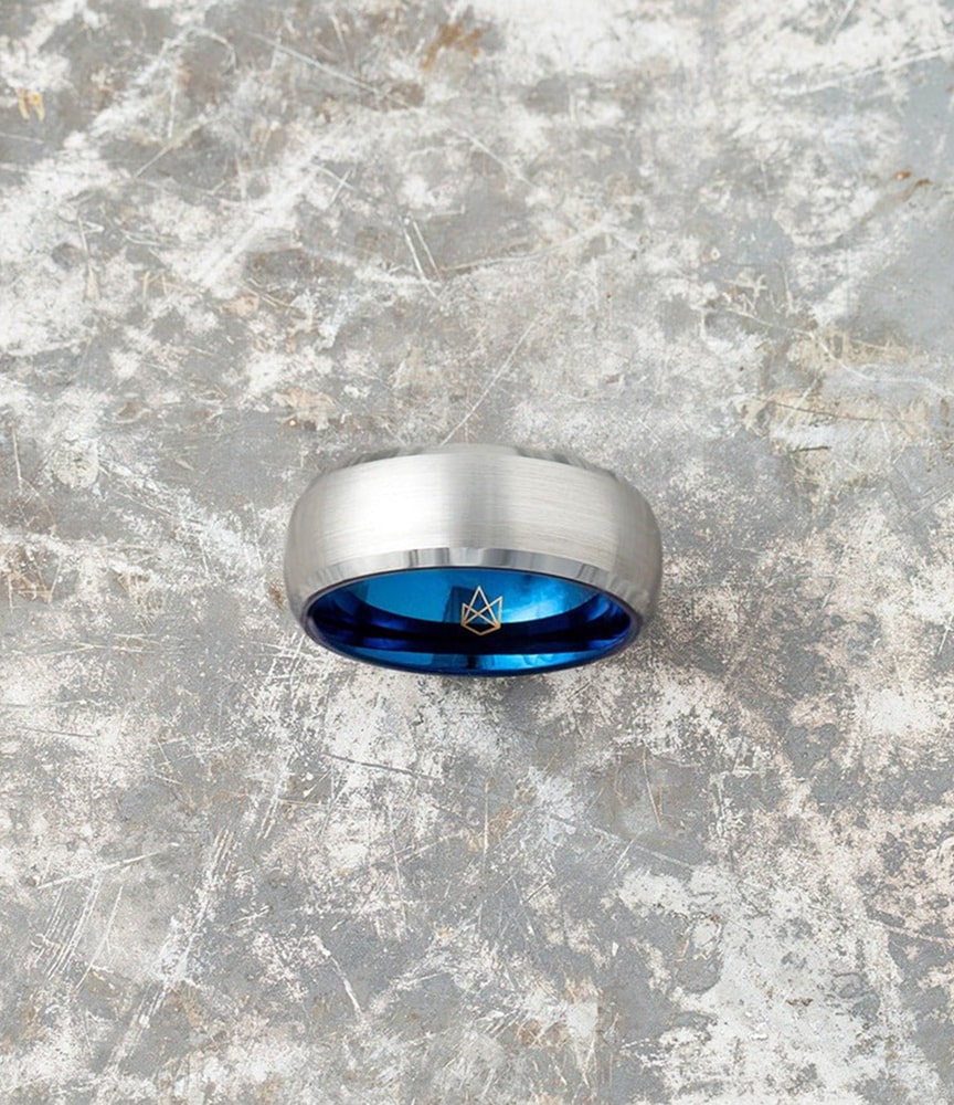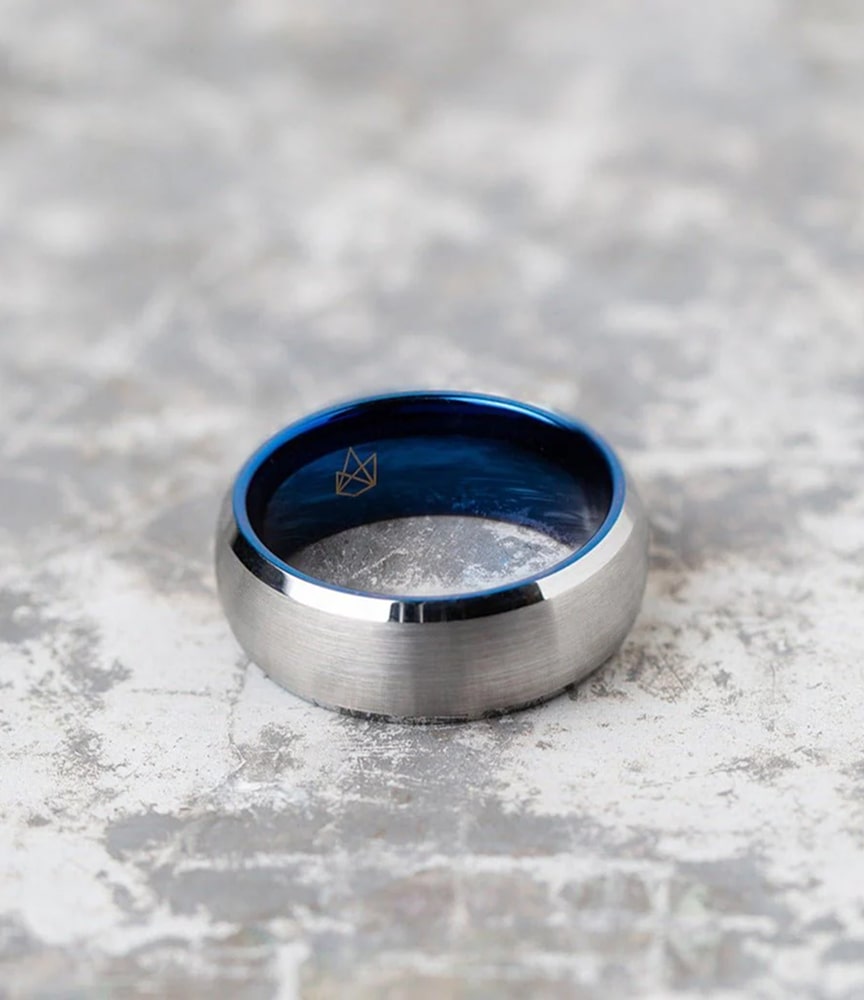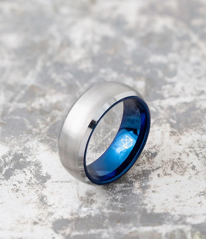 Silver Tungsten Cobalt Blue: The EMBR silver and blue tungsten ring has been engineered to be as strong as it is strikingly beautiful. Its strength is unmatched. It is about ten times harder than 18K gold and about four times harder than titanium. Tungsten also holds its shape forever, meaning the ring will not bend or wear down, truly making it timeless in its function and design.