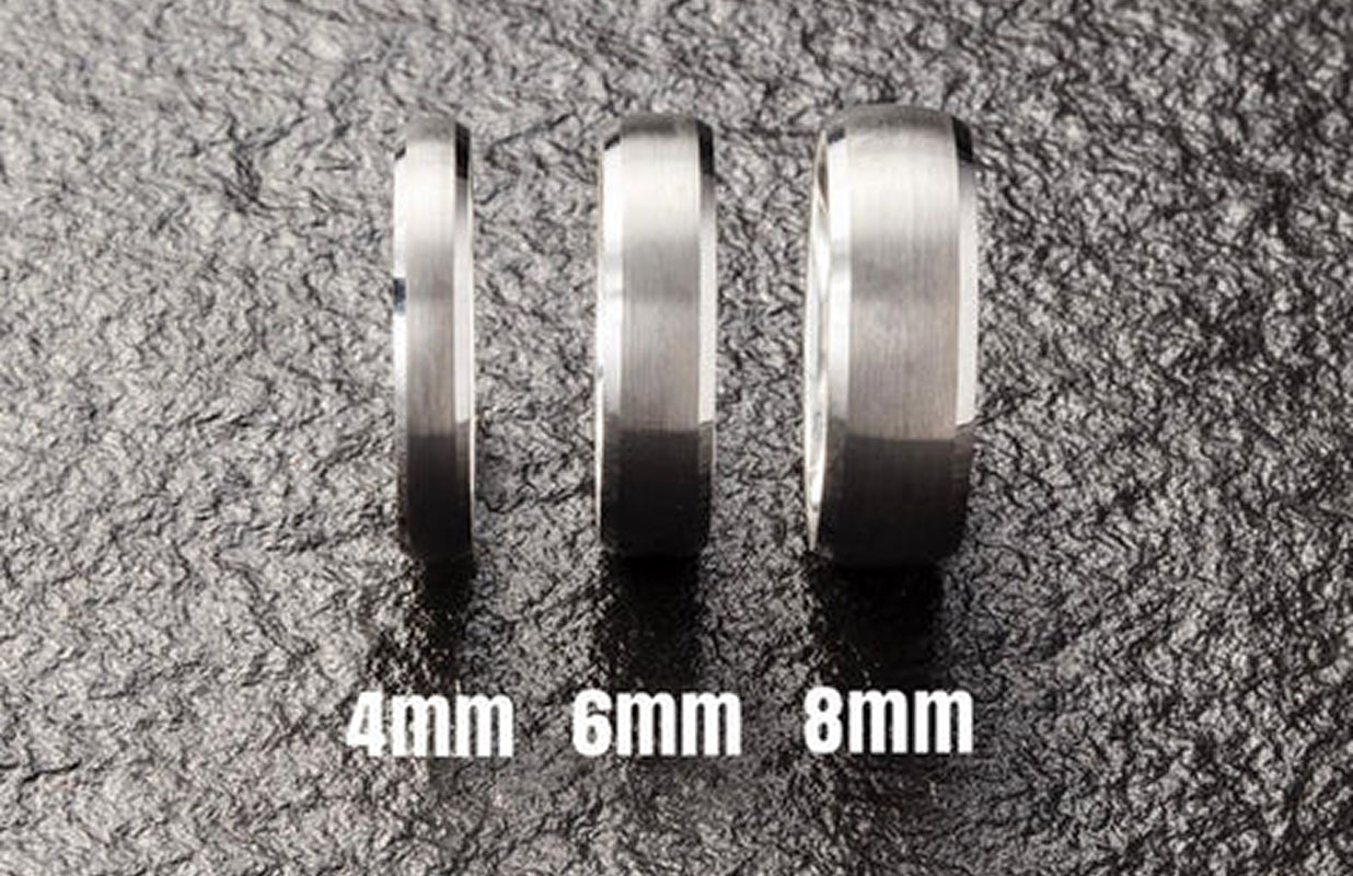 We carry rings in three different widths: 4mm, 6mm, 8mm. For a heavier, more noticeable fit, select a wider ring width. For a more streamlined, minimalist fit, choose a narrower width.