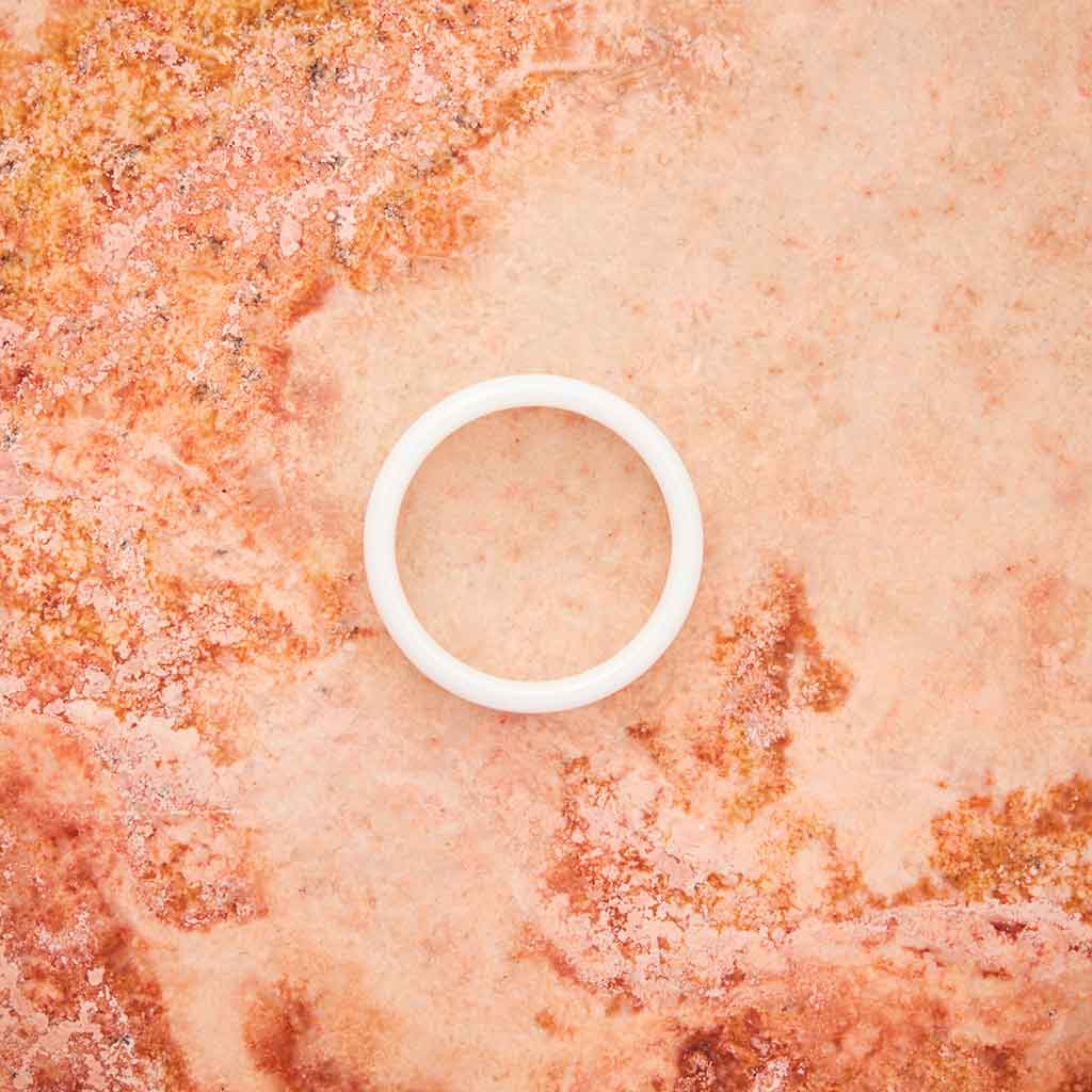 The process of creating the EMBR ceramic band begins with a high-strength zirconia powder that’s combined with alumina to achieve its rich, white color. Each ring is then compression molded, sintered and polished, resulting in a remarkably smooth surface and an exquisite shine.