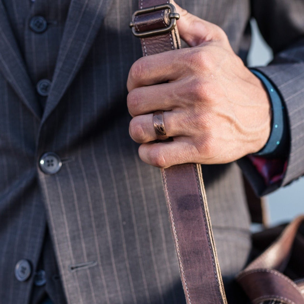 The EMBR damascus band features a stunning wood grain pattern. Our signature light etch creates a beautifully durable ring with a timeless design. Each Damascus ring has a unique pattern, truly making it one-of-a-kind. No two rings are alike.